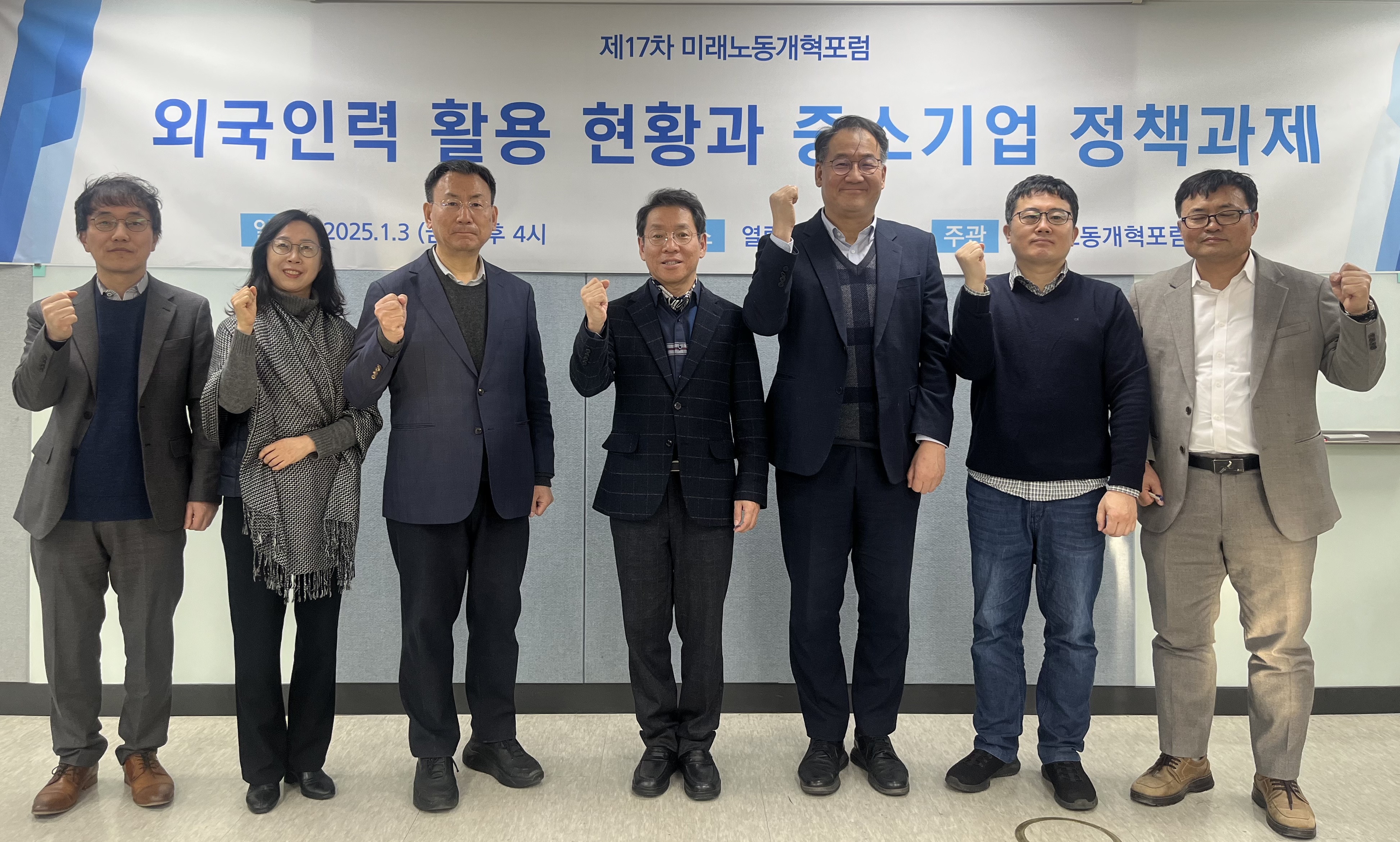 2025년 1월 3일(금), 열림홀에서 <제17회 미래노동개혁포럼> 이 개최되었습니다. 본 포럼은 노민선 중소기업벤처연구원 연구위원의 발제와 강정향 숙명여자대학교 교수, 노호창 호서대학교 경찰행정학과 교수, 정봉수 강남노무법인 대표, 서진두 노무사의 토론, 그리고 좌장 이승길 대표(아주대학교 법학전문대학원 교수)의 사회로 진행되었습니다.