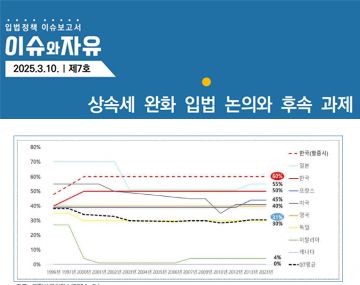 즉, 중산층 세부담의 합리적 완화를 위한 입법에 대해 여야가 공감대를 형성하고 있는 상황이다. 본 이슈보고서는 현 상황에서 여야 간 상속세 완화 관련 입법 논의를 검토하고 현행 상속세법의 문제점 진단 및 후속 과제를 모색하고자 한다.