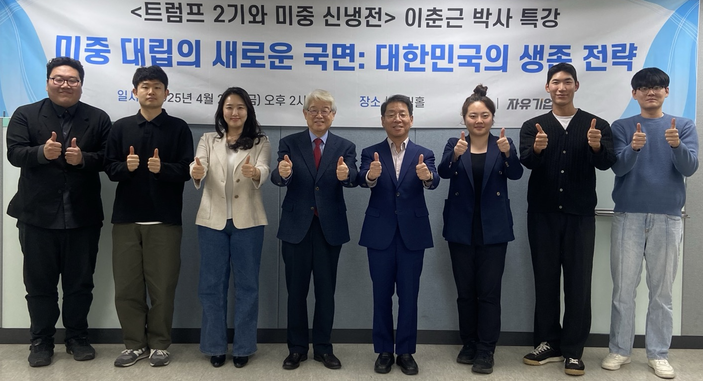 2025년 4월 25일, <미중 대립의 새로운 국면: 대한민국의 생존 전략>을 주제로 한 이춘근 박사님 특강이 개최되었습니다. 이춘근 박사님께서 국제정치의 현실주의 시각으로 미중 갈등이 심화되는 상황을 진단하고, 대한민국이 나아가야 할 생존 전략을 제시해주셨습니다. 박사님께서는 급변하는 글로벌 질서 속 외교·안보 분야에서 한국이 취해야 할 현실적 해법을 제시해주셨습니다.