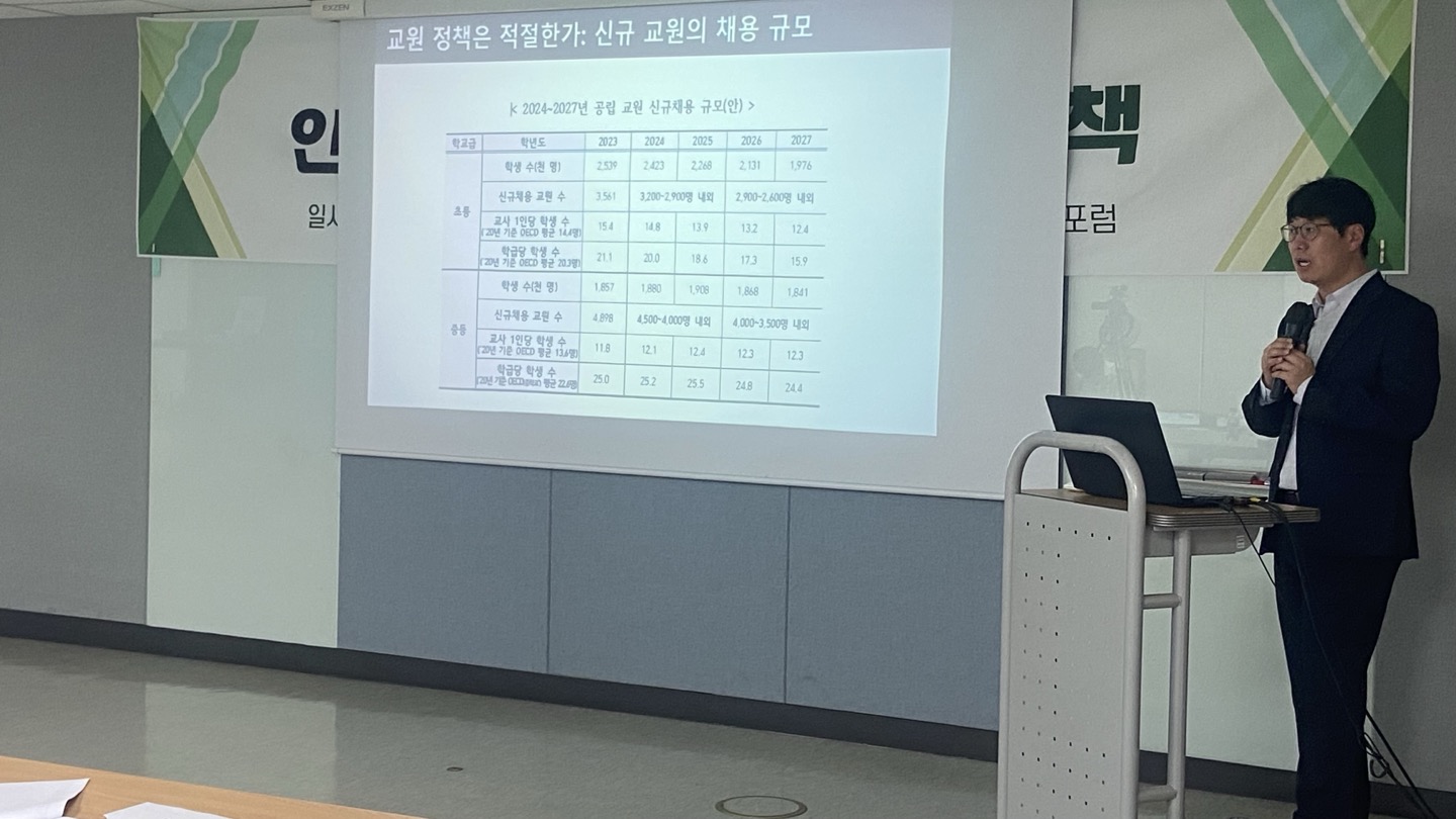 2025년 5월 9일, '인구감소시대의 교원정책' 세미나가 개최되었습니다. 이번 세미나는 학령인구 감소와 학교의 소규모화가 가속화되는 현실 속에서, 교원정책의 새로운 방향을 모색하고자 마련된 자리였습니다. 세미나에서는 교원 수급, 교원의 전문성 재정립 등 교육 현장의 지속 가능성을 위한 다양한 정책 대안이 논의되었습니다.