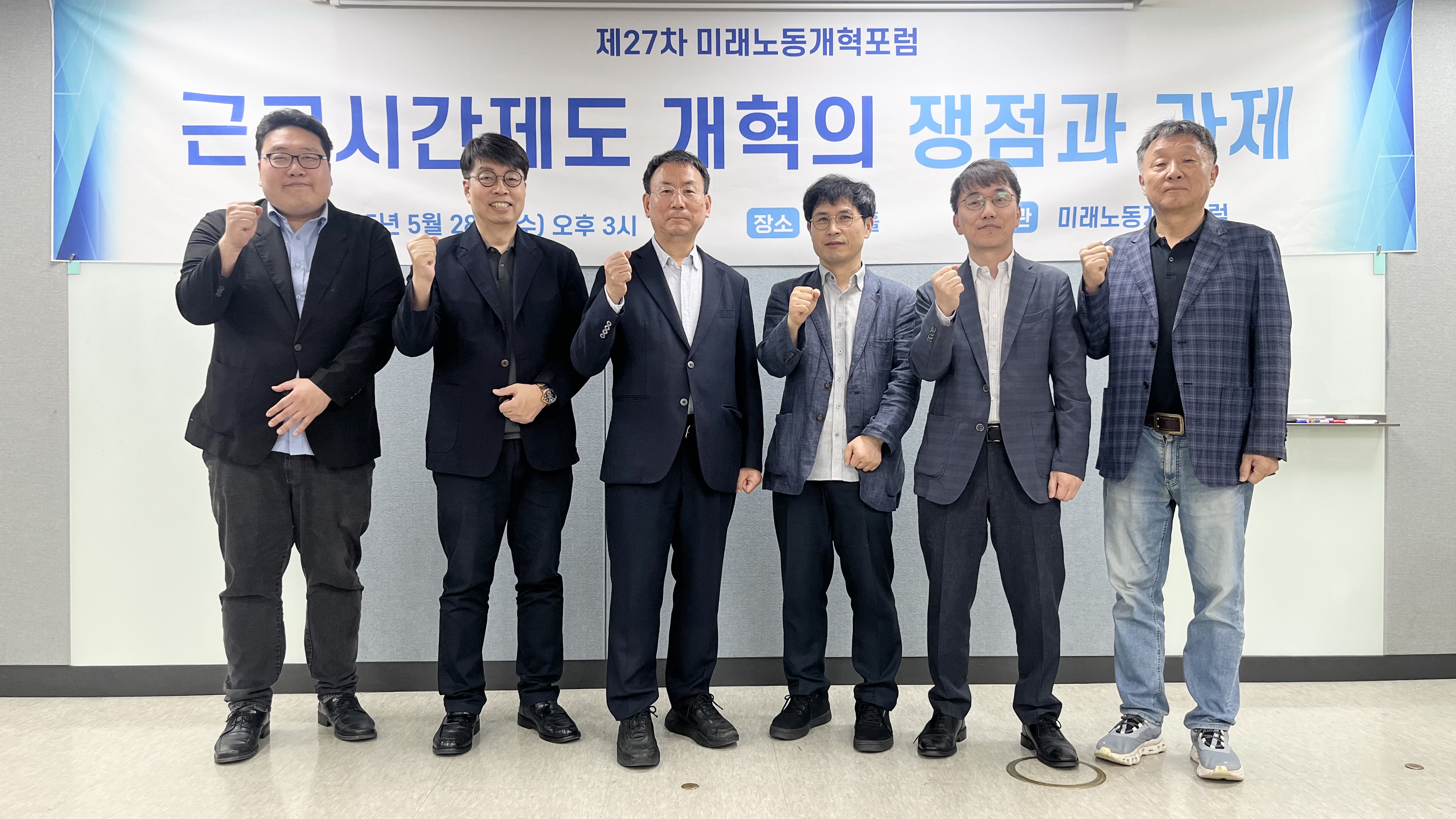 근로시간제도 개혁의 방향성을 모색하기 위해 <제27차 미래노동개혁포럼> 이 개최되었습니다. 본 포럼은 이승길 미래노동개혁포럼 대표의 발제와 김창배 열린사회포럼 사무총장, 서진두 홍익노무법인 노무사, 한인상 국회입법조사처 환경노동팀장의 토론으로 진행되었습니다.