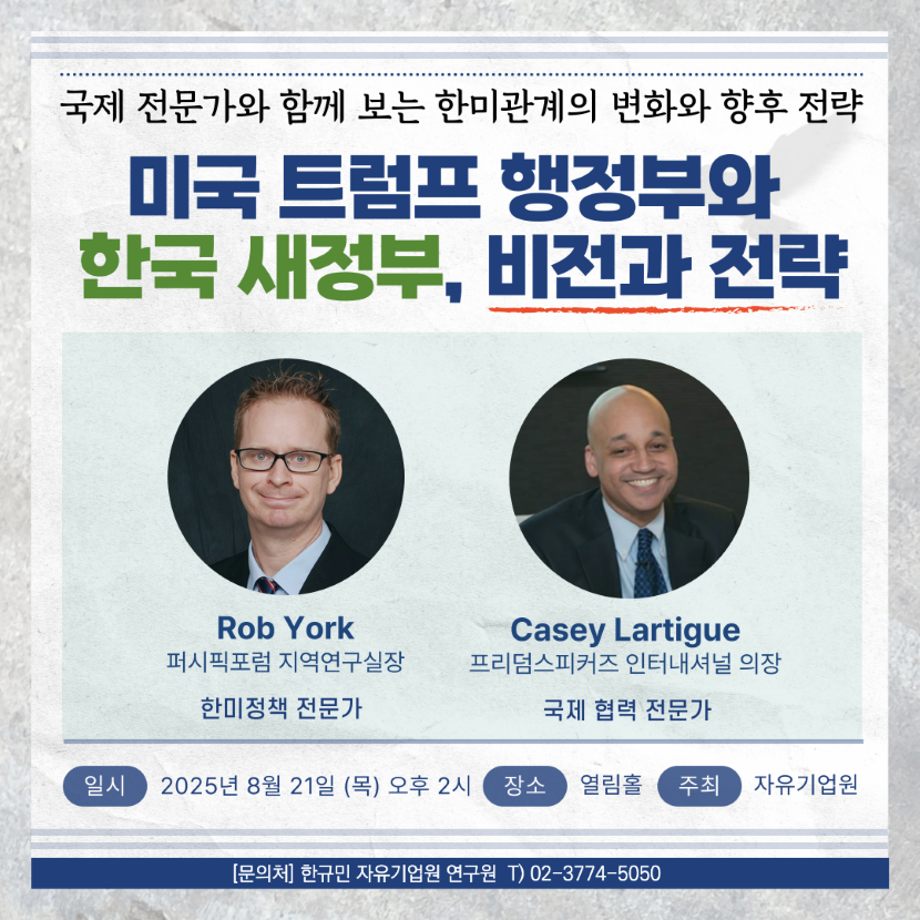 미국 트럼프 행정부와 한국 새정부 출범으로 세계와 한반도의 외교·안보 환경이 급변하는 가운데, 두 명의 국제 전문가가 향후 한미관계의 방향과 전략적 해법을 제시합니다.