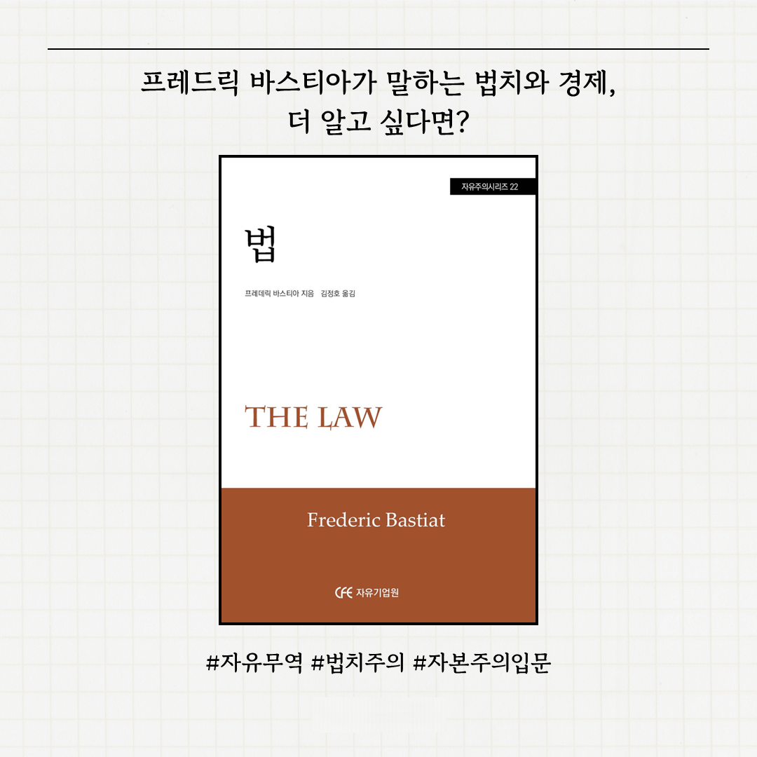 정보 정보 활동 모임 대회 영상 도서 소개 찾기 카드뉴스 오피니언 언론기고 해외칼럼 자유발언대 지텔만 칼럼 홀콤 칼럼 리포트 이슈와자유 경제법안리뷰 카드뉴스 언론 속 cfe 논평 바스티아가 얘기하는 경제와 법치 글쓴이 자유기업원 2026-02-27 목록보기 관련글 관련 글이 없습니다. 이전글 흐름으로 읽는 시장경제의 역사 핵심 9문장으로 읽기