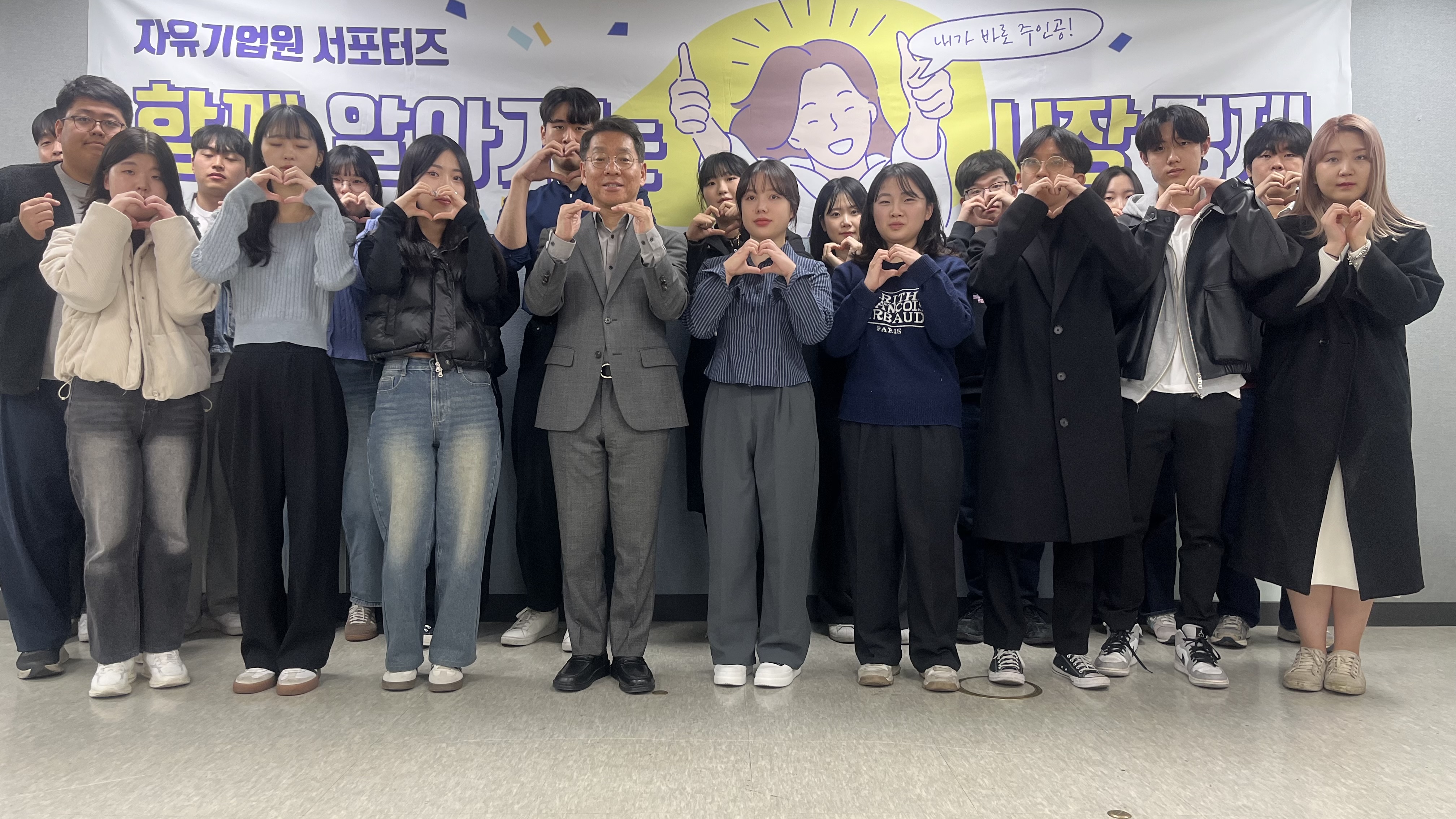 열림홀에서 자유기업원 서포터즈 <함께 알아가는 시장경제> 9기의 발대식이 진행됐습니다. 다양한 전공을 가진 전국 각지의 학생들이 선발되어 발대식에 참여했습니다.