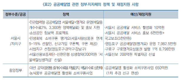 3. 공공배달앱 '땡겨요' 현황 및 정부·지자체 등 공공의 정책과 재정지원