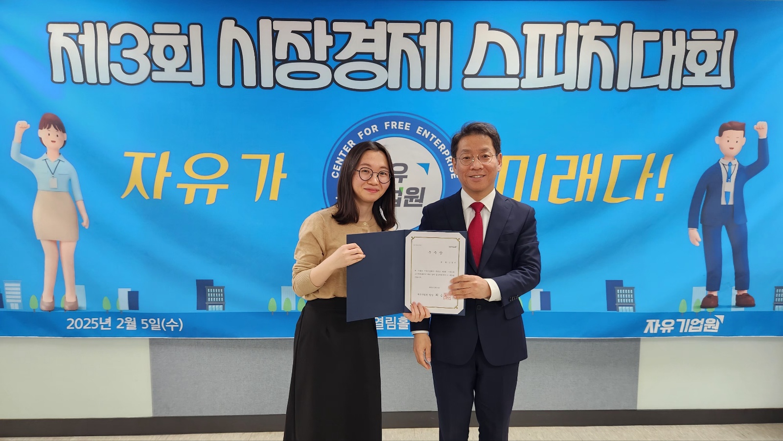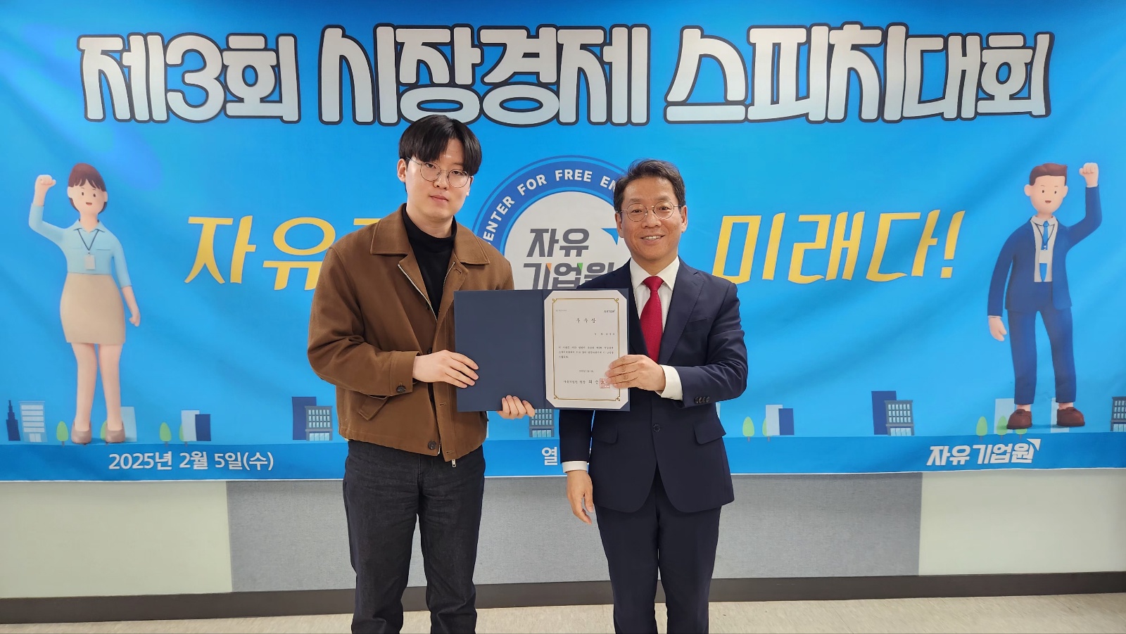 2025년 2월 5일, 산림비전센터 열림홀에서 <제3회 시장경제 스피치대회>의 결선이 진행됐습니다. 날씨는 추웠지만 참가자 분들의 열정으로 현장 분위기는 뜨거웠습니다. 결선 진출자 분들께서 우리 사회 곳곳에 필요한 자유와 시장경제의 중요성에 대해 참신한 인사이트를 생생하게 전해주셨습니다.