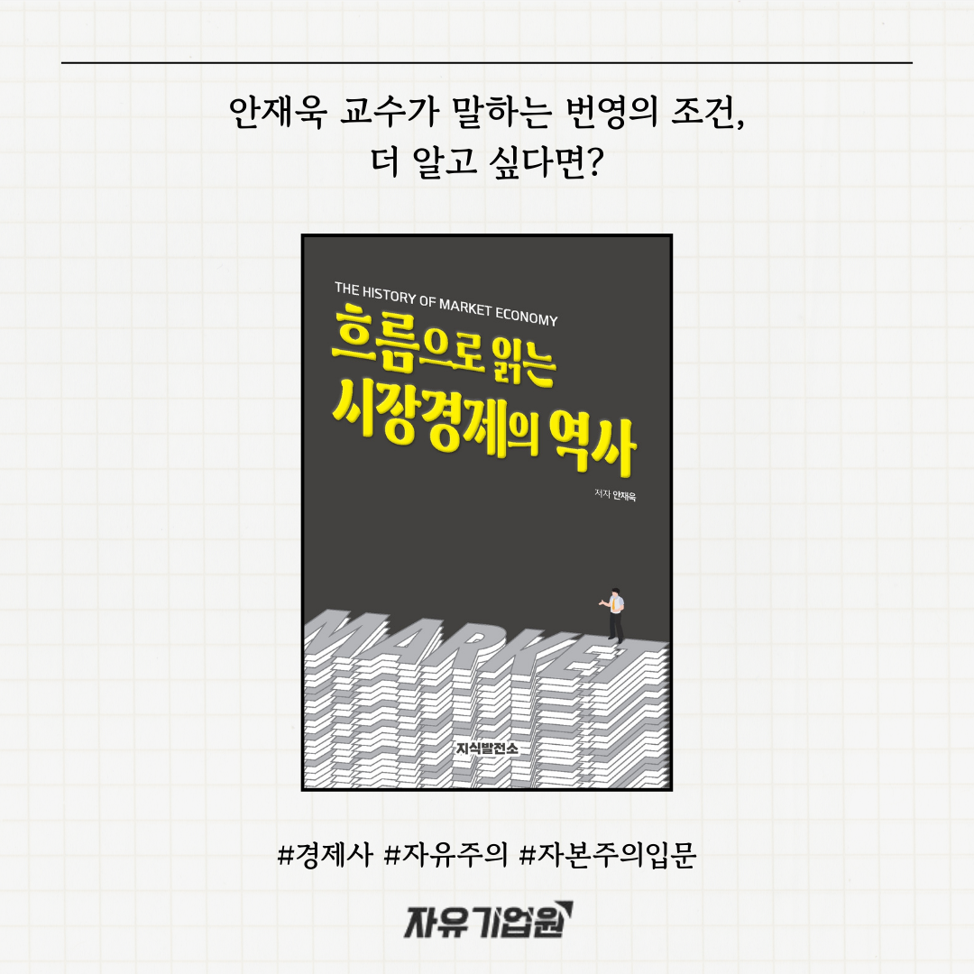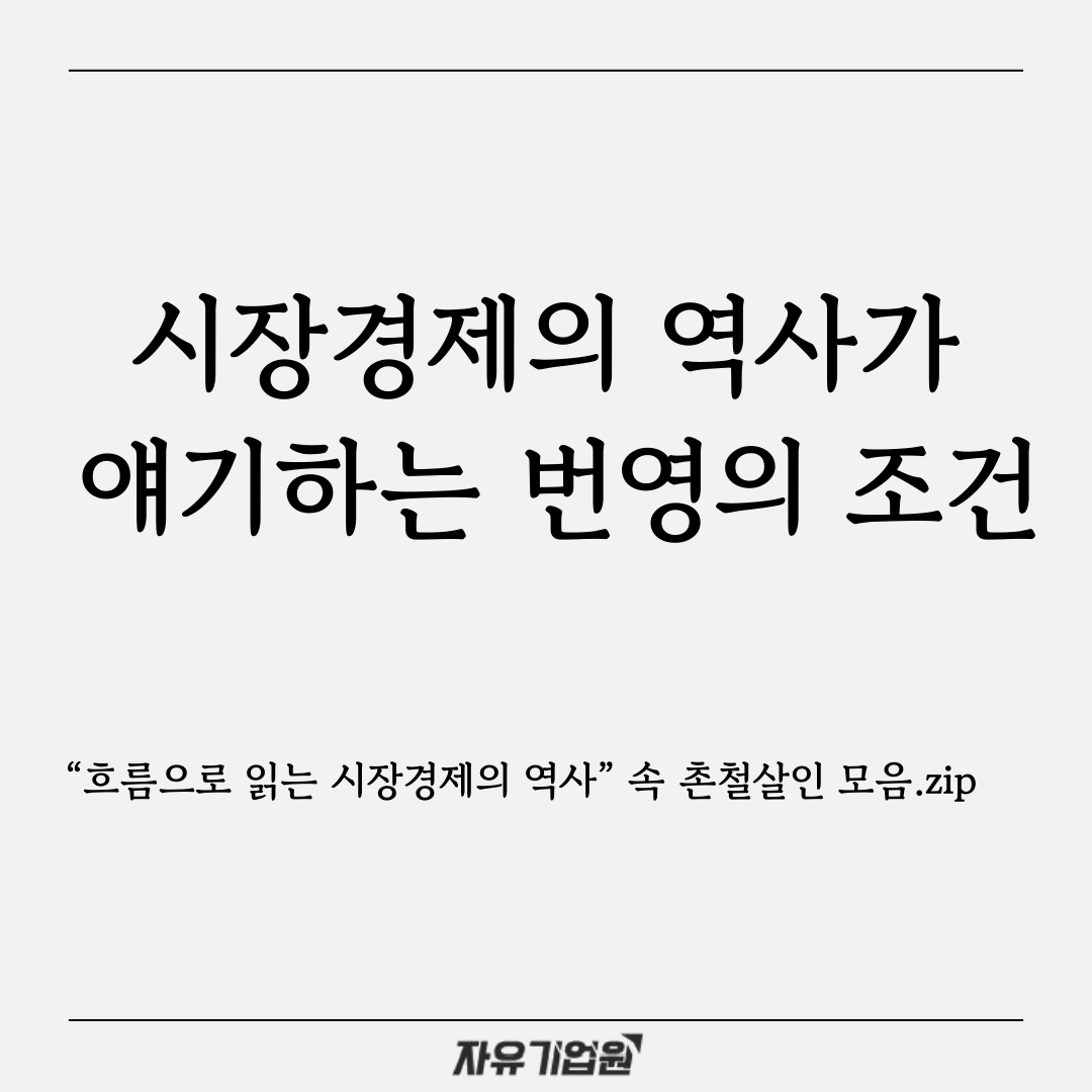 정보 정보 활동 모임 대회 영상 도서 소개 찾기 카드뉴스 오피니언 언론기고 해외칼럼 자유발언대 지텔만 칼럼 홀콤 칼럼 리포트 이슈와자유 경제법안리뷰 카드뉴스 언론 속 cfe 논평 시장경제의 역사가 얘기하는 번영의 조건 글쓴이 자유기업원 2026-02-24 목록보기 관련글 관련 글이 없습니다. 이전글 2026 자유기업원 추천도서