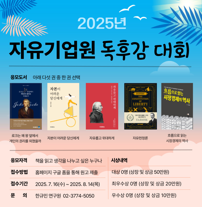 2025 자유기업원 독후감 대회에 관심을 갖고 참여해주신 모든 분들께 감사의 말씀을 드립니다.